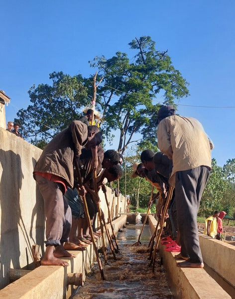 This coffee underwent Natural Anaerobic processing. The coffee cherries are floated and washed with fresh water but are not depulped, allowing the full fruit to remain intact. They are then transferred into a tank fitted with an air valve. Inside the sealed tank, fermentation begins naturally with the yeasts and microorganisms present on the cherries. As the process develops, oxygen is gradually expelled, creating an anaerobic environment ideal for controlled fermentation. Once fermentation is complete, the cherries are rinsed again with clean water and moved to the solar dryer. Drying begins on a ceramic patio and is completed on layered beds within the solar dryer, allowing for slow, even moisture reduction and preserving the coffee’s unique characteristics.